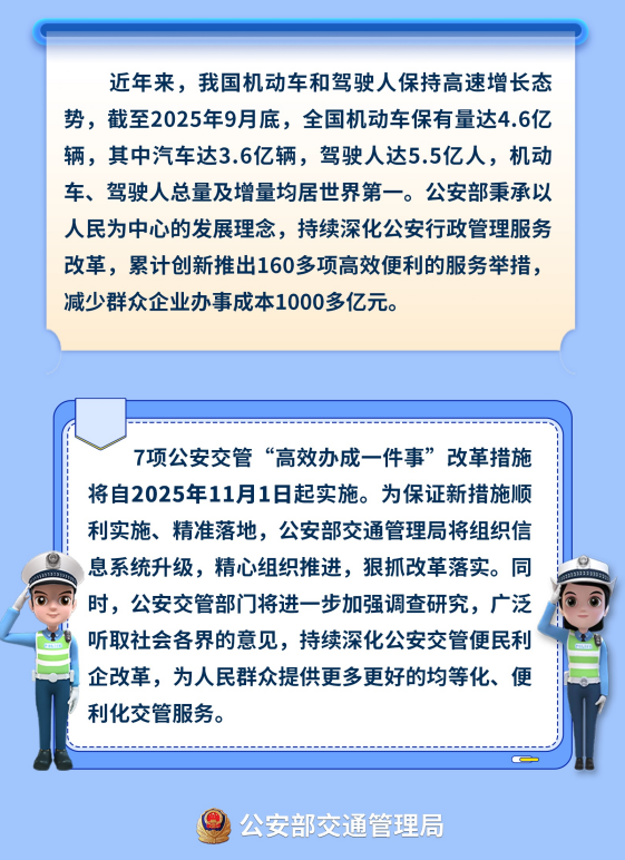 公安部再推7项公安交管“高效办成一件事”改革措施